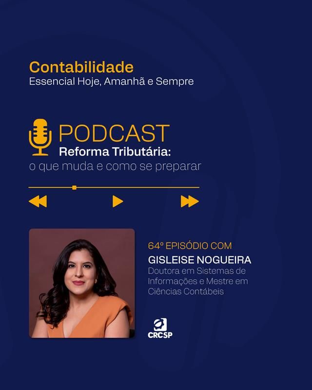 Neste episódio, o podcast “Contabilidade – Essencial Hoje, Amanhã e Sempre”, do Conselho Regional de Contabilidade do Estado de São Paulo (CRCSP), entrevista a Profa. Dra. Gisleise Nogueira sobre os principais pontos de transição para o IBS e a CBS, os impactos práticos para diferentes setores, os riscos de não se preparar e o novo papel da contabilidade profissional diante desses cenários de mudanças estruturais.